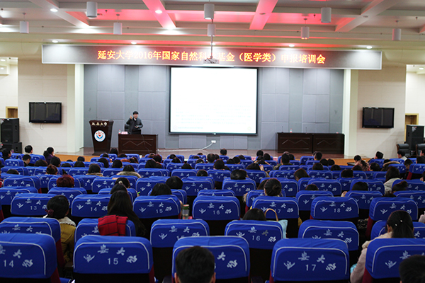 11月28日上午,延安大学2016年国家自然科学基金项目(医学类)申报动员暨培训会在校图书馆十楼报告厅举行,来自国家自然科学基金委员会、国家卫生计生委、北京大学、复旦大学、西安交通大学、江南大学的7位知名专家,我校各学院教师、附属医院的硕博士及副高职称以上科研骨干,西安市中心医院、延安大学咸阳医院、延安市人民医院、宝鸡市人民医院等单位的研究人员及在校研究生近400人参加了申报动员暨培训会。这次大会共分为三个阶段,首先举行的是申报动员会,动员会由医学院院长韩继明主持。
