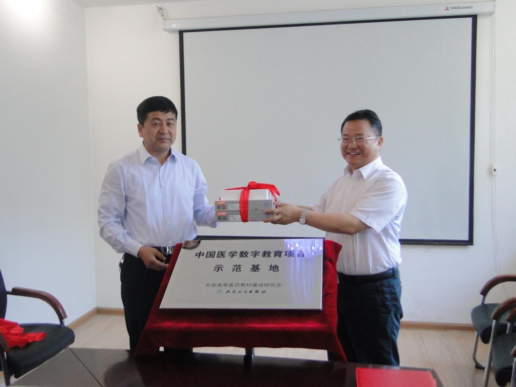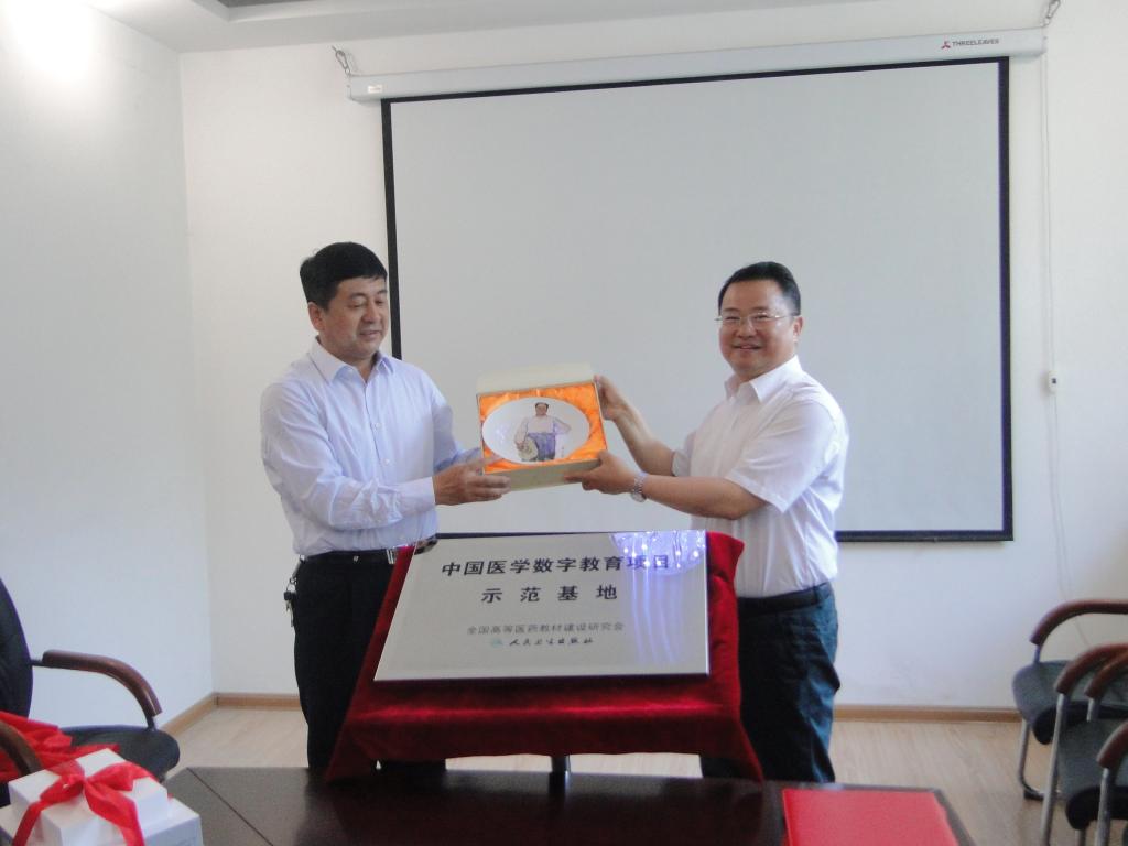 随后,韩继明院长与杜贤总编辑签订了“中国医学数字教育项目示范基地”合作协议;许静洪副校长与杜贤总编辑共同为示范基地揭牌;杜贤总编辑代表人民卫生出版社为医学院赠送了数字教材试点平板电脑,许静洪副校长代表延安大学赠送了纪念品。