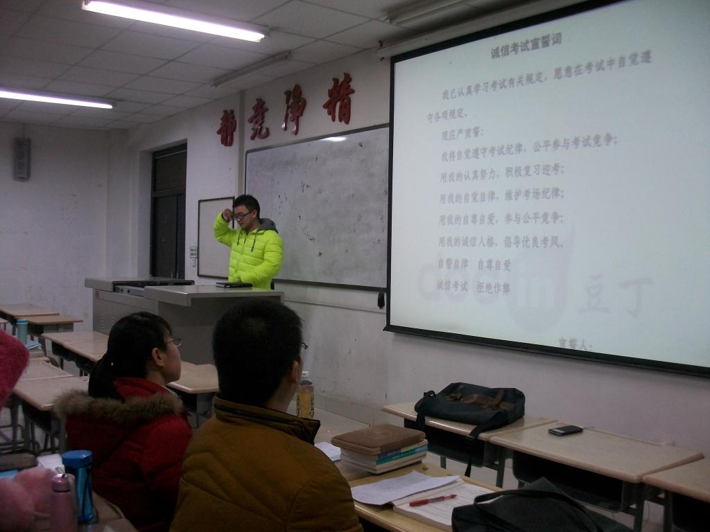 期末考试来临,为了严肃医学院求真务实的考风,弘扬诚信精神,加强同学们的诚信意识,学院2014级各班分别于元旦前夕召开了诚信考试主题班会。
