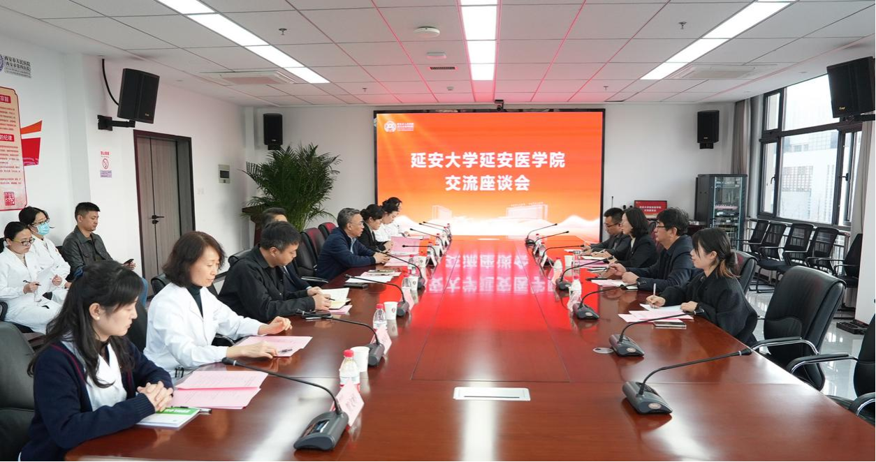 石胜彬从医院发展历程、学科布局、人才队伍和医疗服务等方面介绍了医院整体情况。他强调,医院高度重视医教协同工作,期待与延安医学院携手打造高水平合作典范。