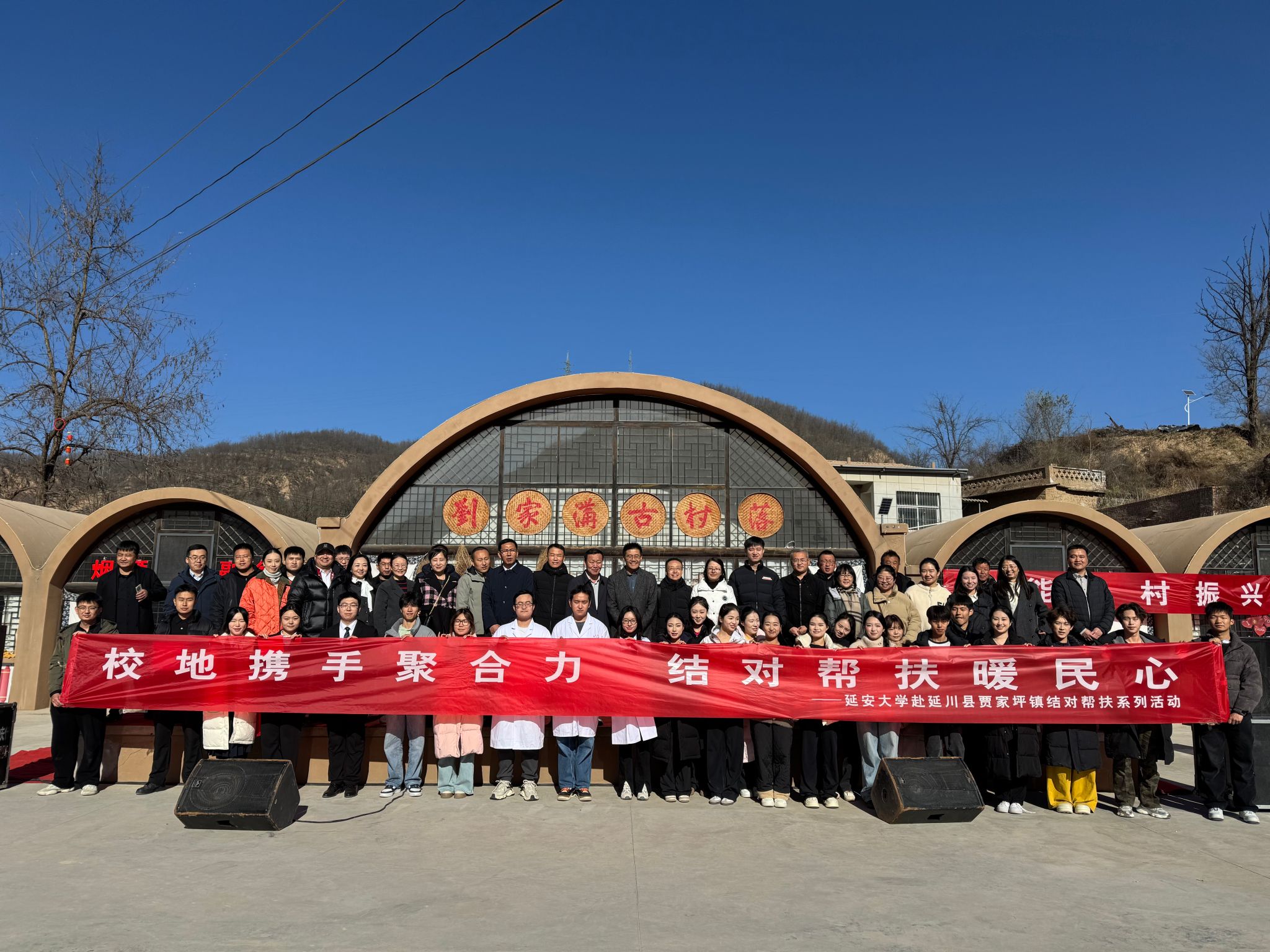 11 月 25 日上午,延安大学组织部(机关党委)联合延安医学院、政管学院、教科院 50 余名师生代表,赴延川县贾家坪镇开展“赓续红色血脉 赋能乡村振兴”结对帮扶系列活动。活动由组织部(机关党委)统筹、多学院协同实施,涵盖主题党日、文艺演出、义诊送药、普法宣传、心理咨询、劳动教育等多元内容。