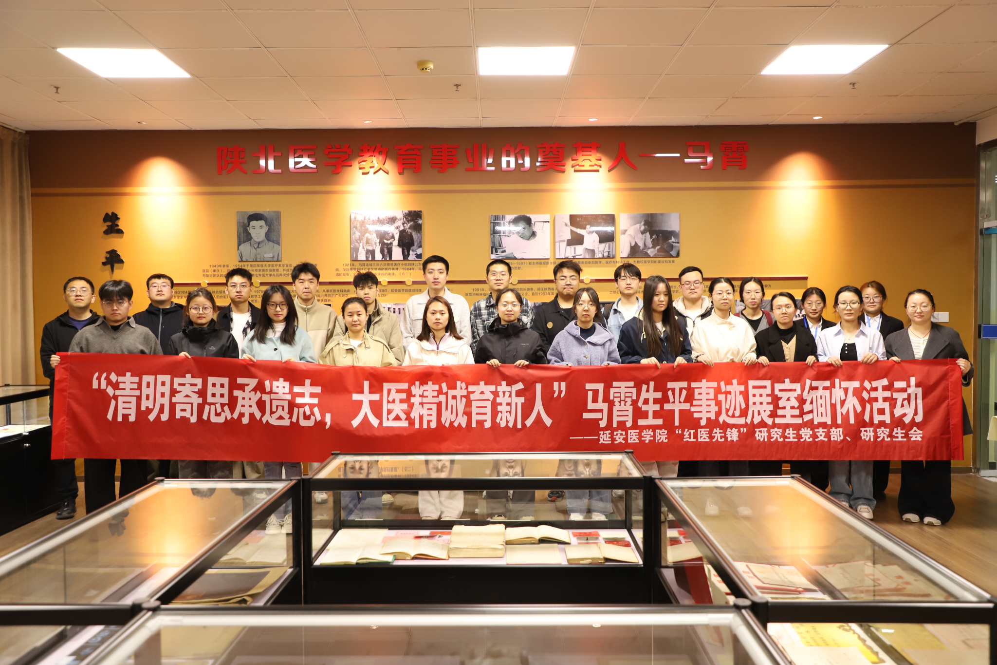 3月31日晚,延安医学院研究生代表在马霄生平事迹展室举行“清明寄思承遗志,大医精诚育新人”主题缅怀活动。“红医先锋”党支部委员、研究生会成员、第68期研究生入党积极分子、研究生班主任参与活动。活动由学生第四党支部副书记卢琪主持。