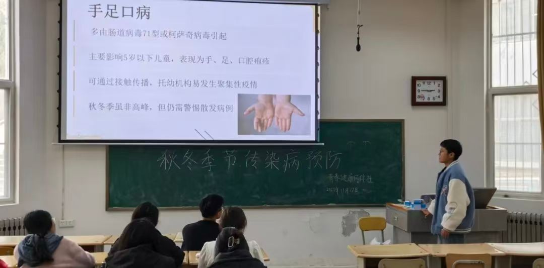 秋冬季是各类传染病的高发期, 校园作为人员密集场所, 更是防控的重点区域。为保障全体师生的健康, 维护正常教学秩序, 延安大学延安医学院青春健康同伴社特举办 “守护秋冬健康,共筑免疫防线” 专题校园宣讲会。让我们用科学的知识, 为自己和同学的健康保驾护航!