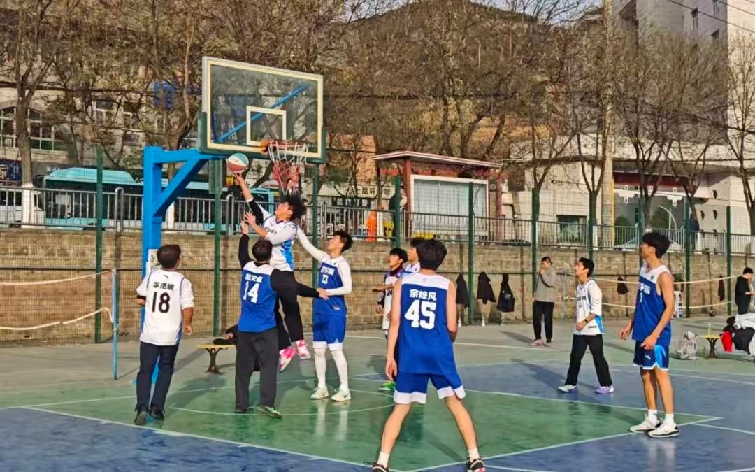 裁判哨声一落,便有球员纵身一跃。同学们在激烈的赛场上挥汗拼搏,每一次起跳,每一次传递,每一次眼神的交流,每一次技巧的碰撞,都是球与球的对决。一场球赛,点燃了同学们心中的热血,激发出青春最动人的激情!