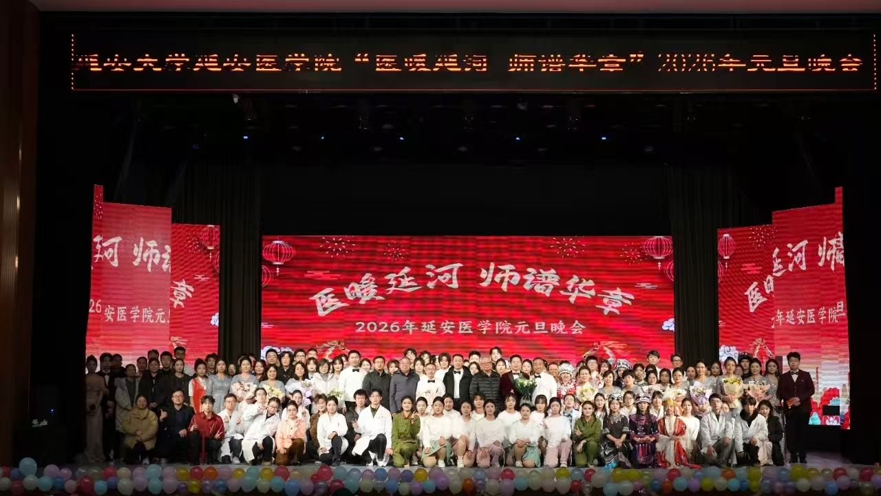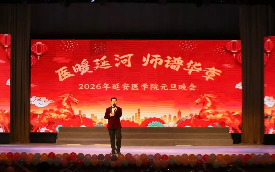 冬日韵浓,新元即启。为庆祝2026年元旦的到来,营造积极向上的校园文化氛围,丰富同学们的课余生活,延安大学延安医学院“医暖延河,师谱华章”2026年元旦晚会于杨家岭大礼堂隆重举行。一场融合青春、仁心与传承的文艺盛宴在此上演,为岁末添上温暖而激昂的注脚。