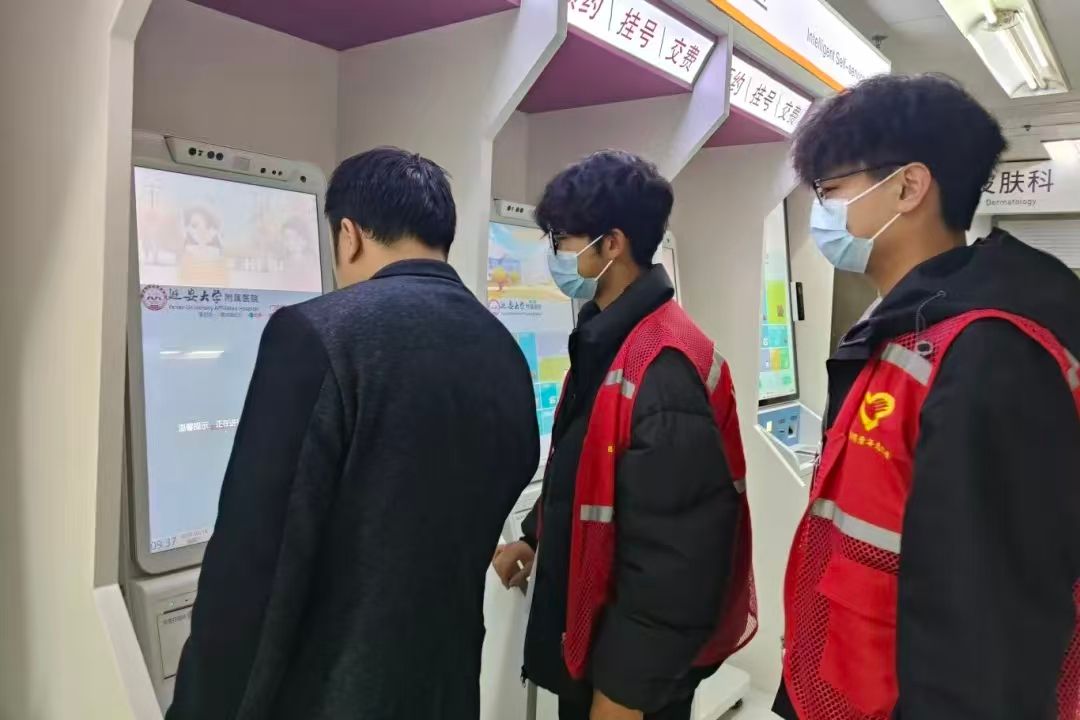 医院自助挂号缴费区,一些老年患者和不熟悉智能设备的群众操作起来较为困难。门诊部主管护理师惠亚萍、护士刘瑞瑞也悉心指导志愿者们如何更好地协助患者。志愿者们耐心地为患者讲解自助机使用方法,手把手帮助完成挂号、缴费、打印报告等操作,有效缩短了患者排队等候时间。对于行动不便的患者,志愿者们主动上前搀扶,引导致相应科室。