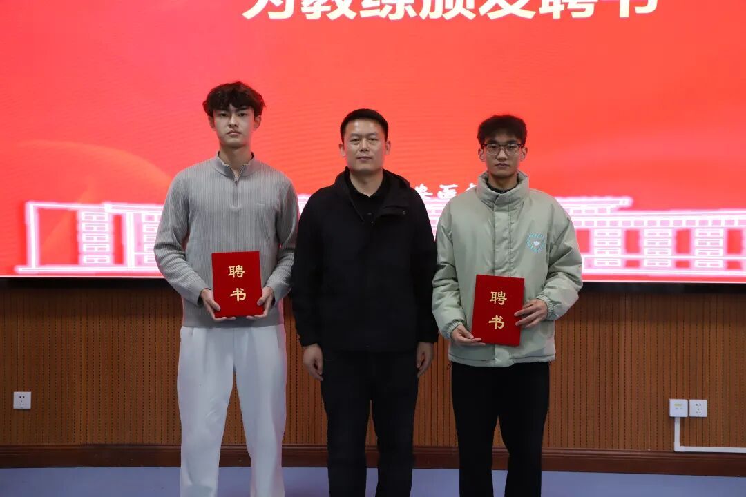 随后,学工办副主任陈世荣为田径队教练汪鸿富、宗建栋颁发聘书,正式聘任专业教练指导队伍日常训练与赛事备战。宗建栋教练在发言中公布了详细的训练计划,明确了训练要求,并表达了带领队伍科学训练、突破自我的坚定决心。