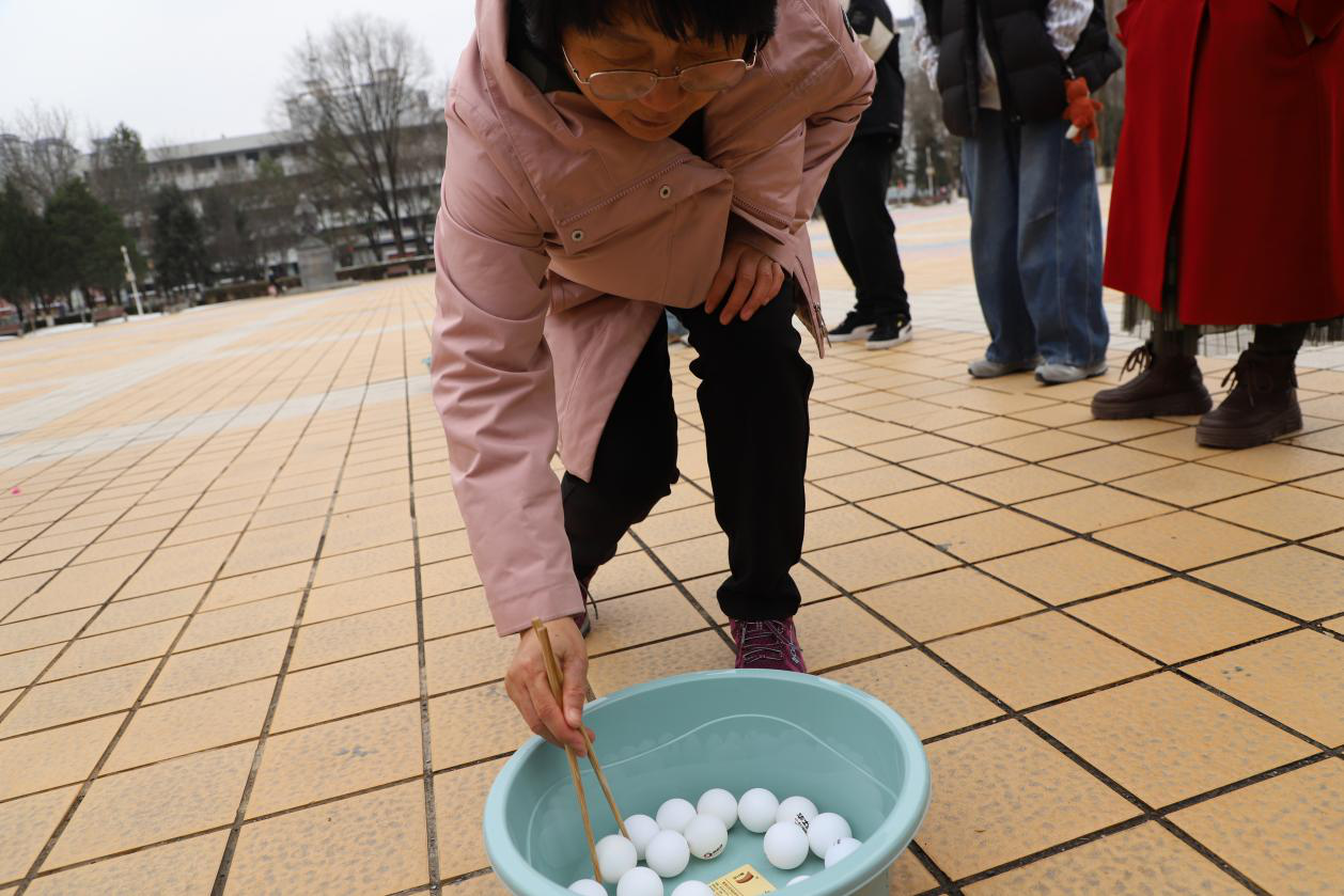 活动现场的趣味游戏环节更是将活动推向高潮,六大项目包括“你比划我来猜”、“筷子夹乒乓球”、“听歌识曲”、“穿针引线”、“一分钟跳绳”和“两人三足”,不仅增添了节日气氛,也促进了同事间的默契与合作。特别是在“筷子夹乒乓球”游戏中,参与者们屏息凝神,小心翼翼地将乒乓球从起点运至终点,场面紧张而又充满欢笑;而在“两人三足”比赛中,大家齐心协力,向着终点冲刺,展现了团队精神和协作能力。