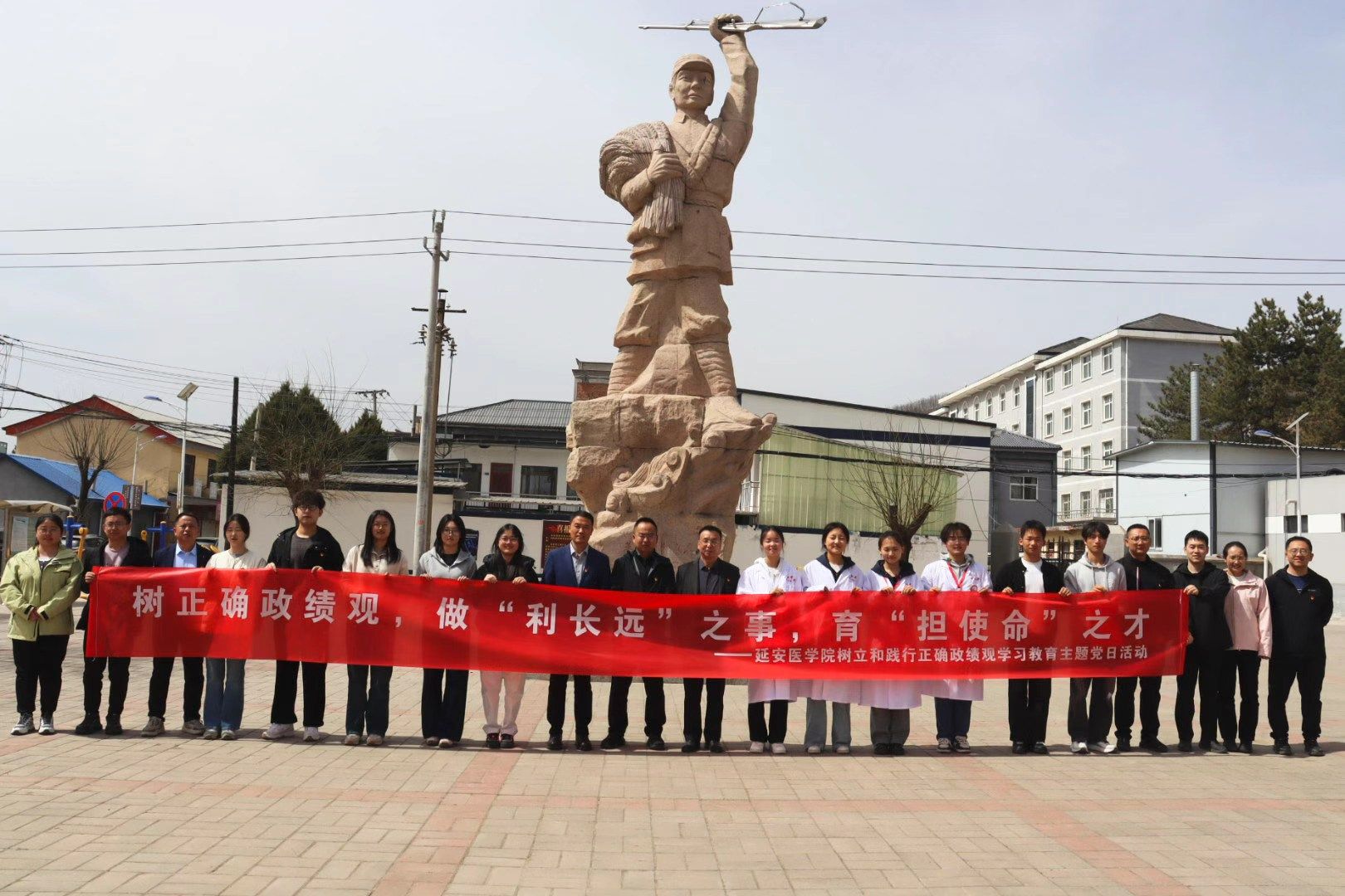 师生们齐聚临镇镇政府广场,开展“树立和践行正确政绩观”学习教育主题党日活动。临镇镇党委副书记、镇长薛军军应邀出席并致辞。他对延安医学院师生的到来表示热烈欢迎,对师生们开展的心肺复苏、口腔知识宣讲和义诊活动给予高度评价。薛军军表示,临镇将一如既往支持校地合作,共同为乡村健康事业贡献力量。