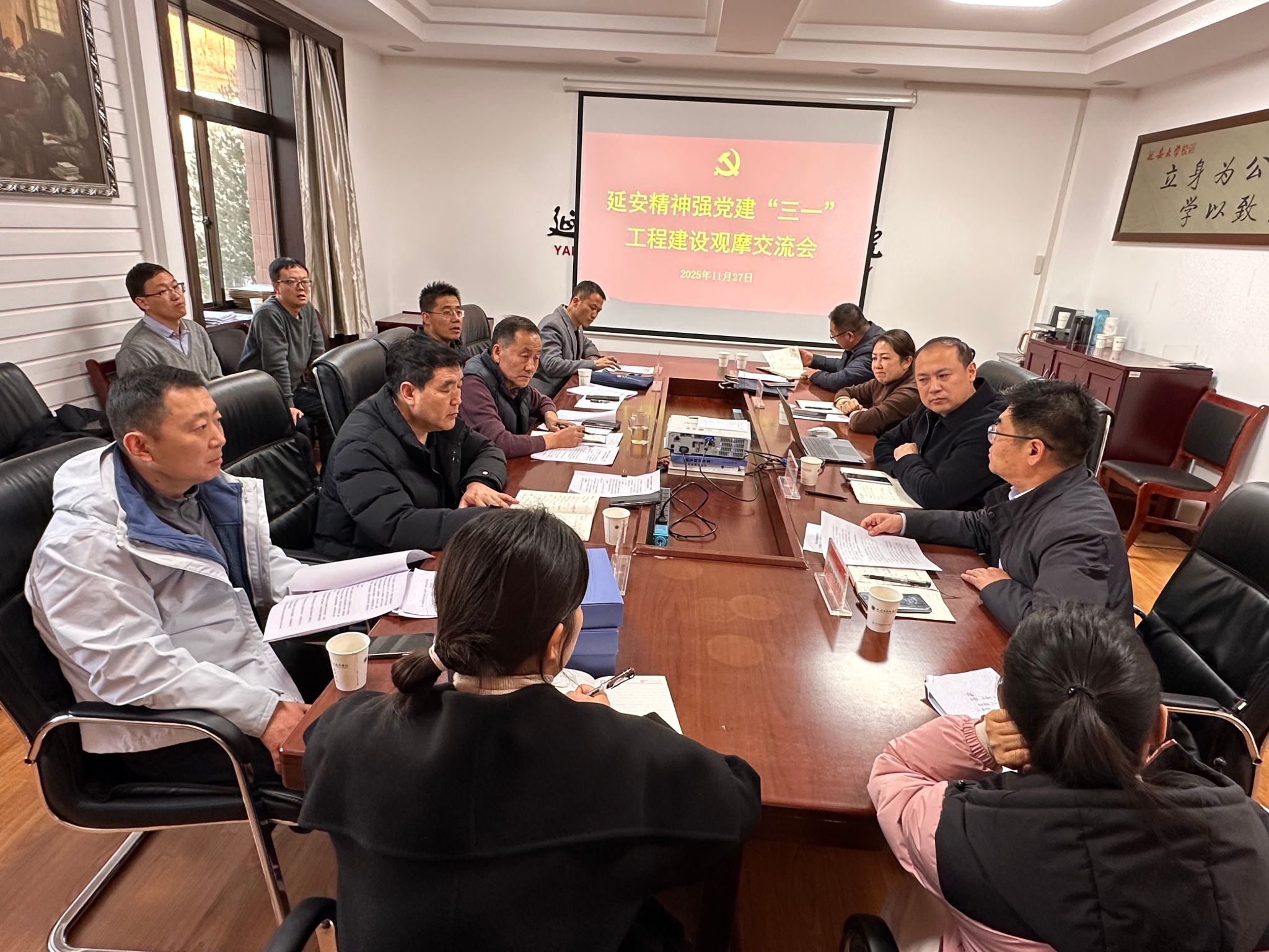 为深入学习贯彻党的二十届四中全会精神,扎实推进延安精神强党建“三一”工程落地见效,11月27日下午,组织部牵头组织在杨家岭校区开展召开“三一”工程实施情况研讨交流会。延安医学院、生命科学学院、化学与化工学院、教育科学学院、离退休职工党委、基础教育党总支和后勤党总支党组织书记、组织员及相关人员参加会议。会议由延安医学院党委书记葛彬主持。
