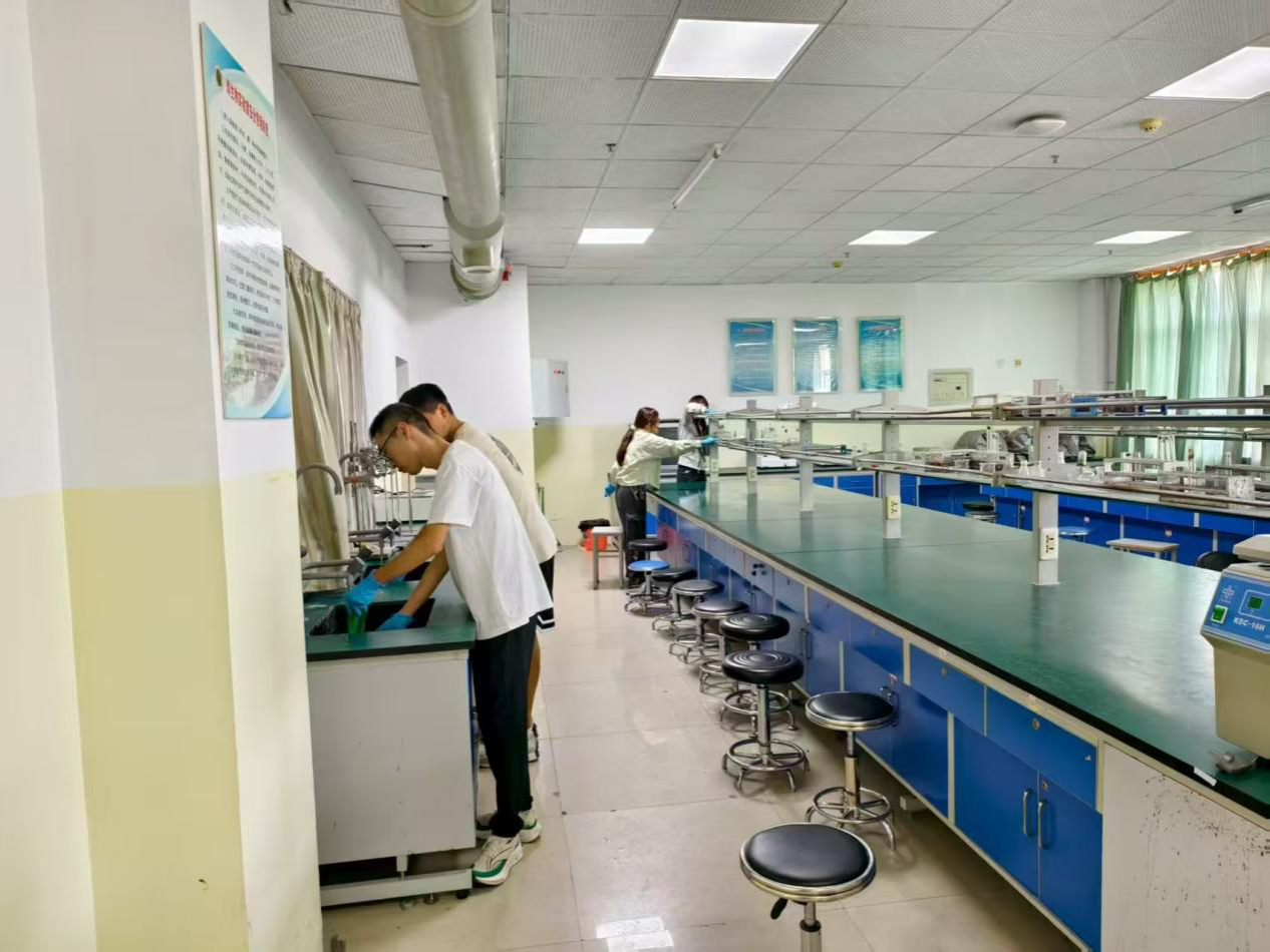 活动伊始,实验室教师对参与学生进行了细致的任务分工,明确了各区域的清洁标准与安全注意事项。同学们分组协作,有序开展实验台面擦拭、仪器设备清洁、试剂分类整理、地面清扫及消毒等工作。劳动过程中,同学们热情高涨,团结协作,认真细致,确保不留卫生死角。经过两个多小时的共同努力,实验室环境焕然一新,物品摆放整齐有序,有效提升了实验教学场所的安全性与整洁度。