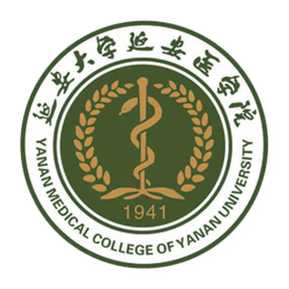 延安医学院图案选深绿色和土黄色,代表着这所黄土地上的高等学府为人类健康不懈努力。主体由蛇杖、橄榄枝叶、1941、圆形双环以及郭沫若书中文及齐头英文延安大学延安医学院词组合而成。同心双环结构分别代表延安大学和延安医学院同心同德的双重凝聚力,同时,也与延安大学校徽相呼应。标识图案借鉴了国际卫生组织通用的标准蛇杖图形,蛇杖与橄榄枝分别象征生命和希望。彰显出延大延安医学院师生关爱生命的人文精神。